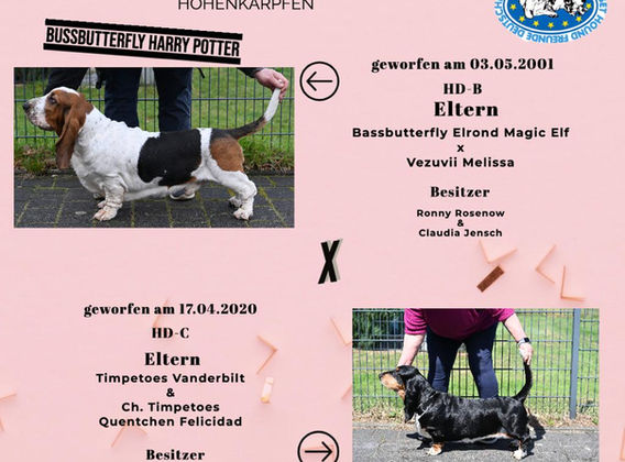 Catoo und Potter, zwei liebevolle Basset Hounds, hatten das Glück, sich während eines Liebesurlaubs bei Potter zuhause kennenzulernen. Es war ein warmer Sommerabend, als Catoo zum ersten Mal durch die Tür trat. Ihr glänzendes schwarzes Fell und ihre sanften Augen verzauberten Potter sofort.